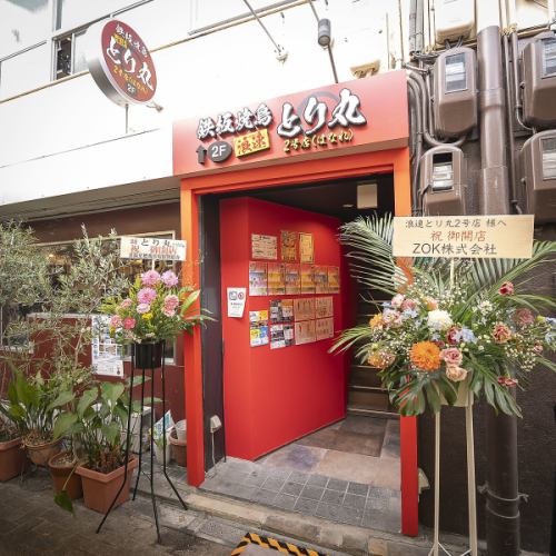 「鉄板焼鳥 浪速とり丸」の赤い看板が当店の目印です!